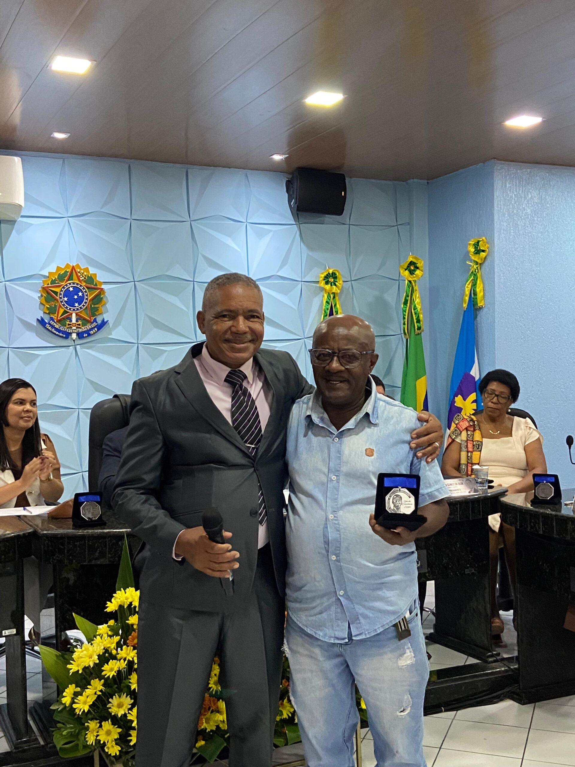 Durante a solenidade, 11 munícipes foram homenageados pelos vereadores, cada um recebendo a Medalha Zumbi dos Palmares, símbolo de respeito e gratidão pelos relevantes trabalhos desenvolvidos em prol da comunidade e pela resistência diária na construção de uma sociedade mais justa e igualitária.